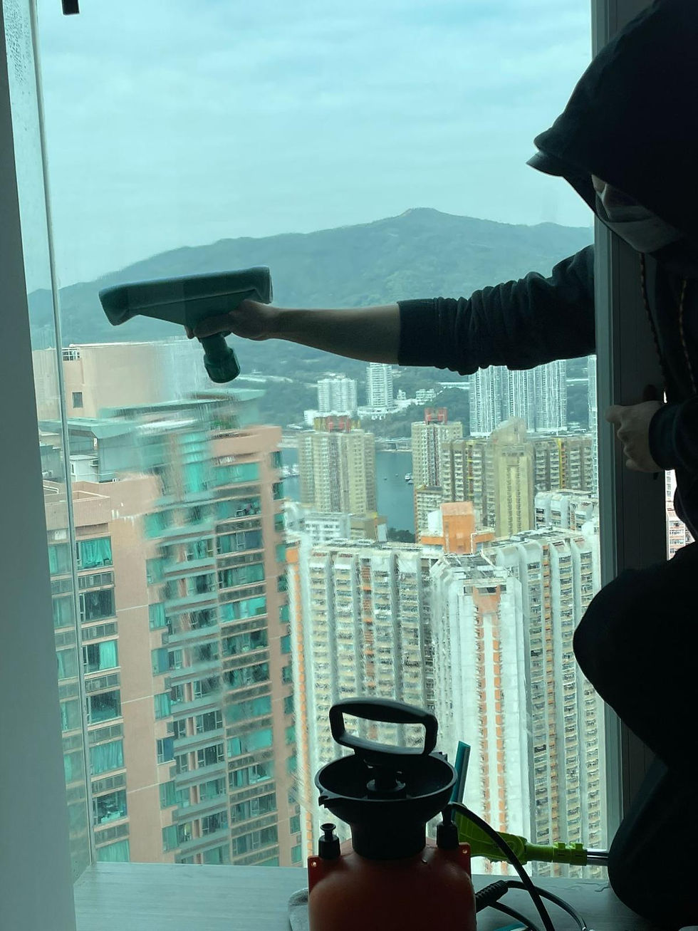 家務助理絕不會為清潔難以觸及的污漬而冒險探出窗外或以窗框借力。